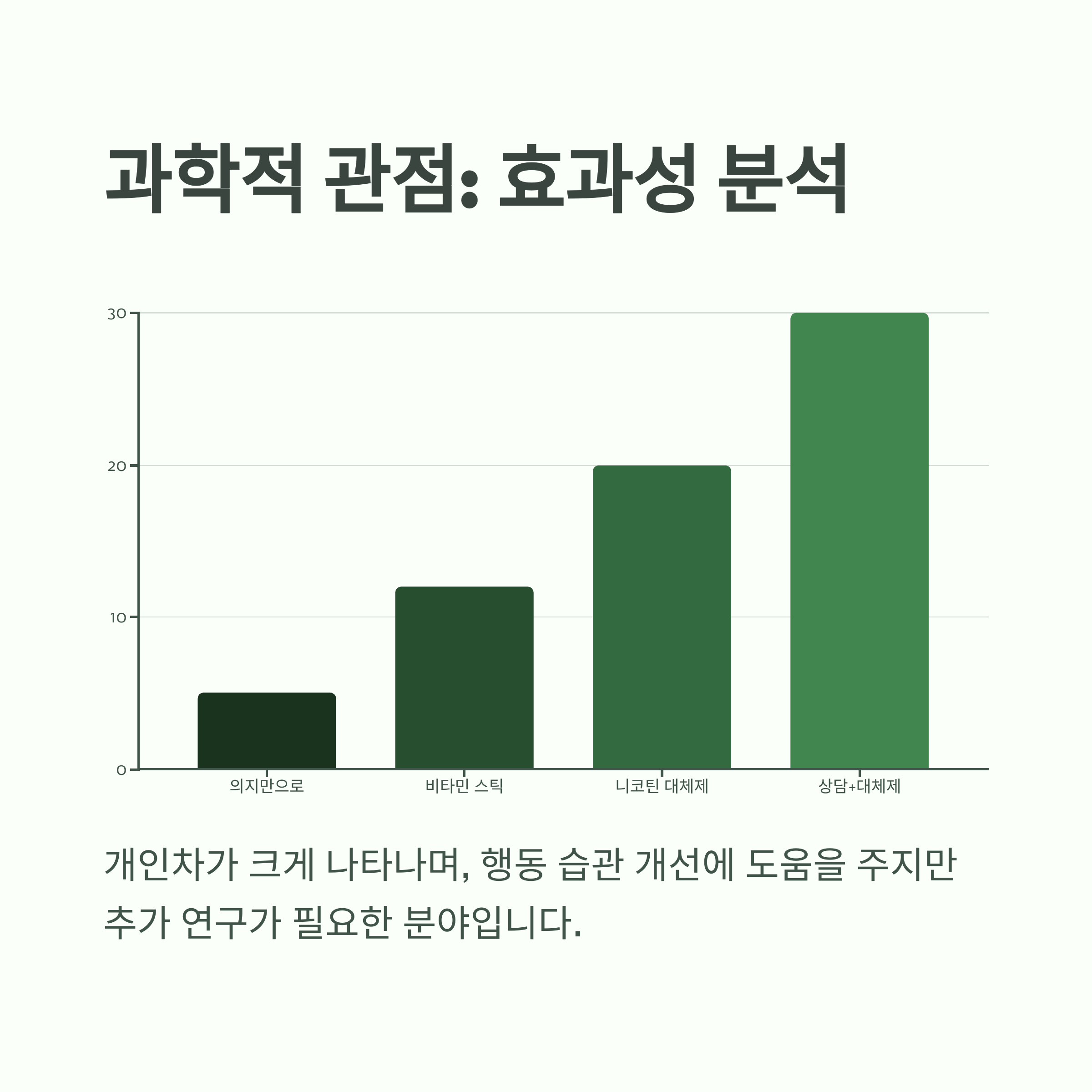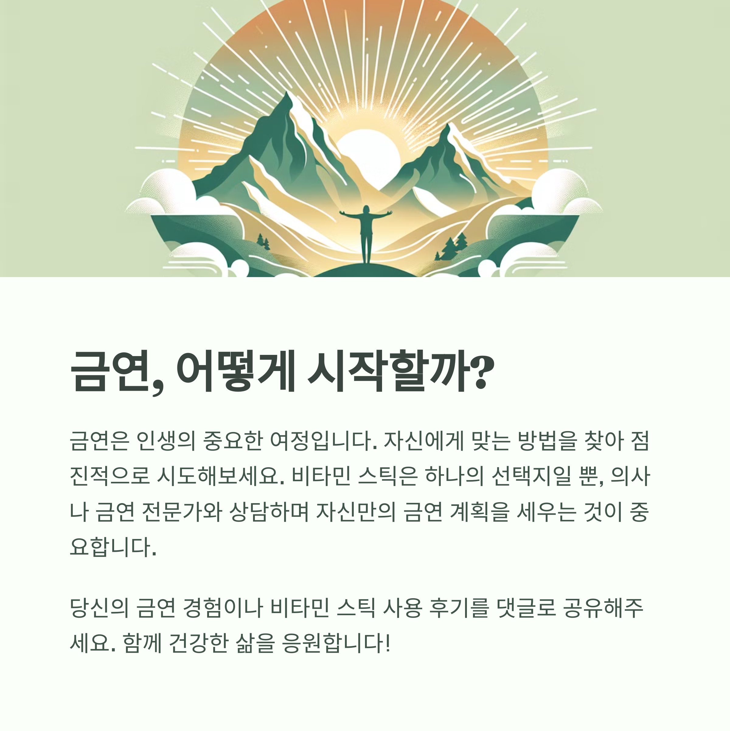 ✅ 팁: “아침 첫 담배가 가장 어렵다면, 기상 후 바로 비타민 스틱을 대체 사용해보세요. 심리적 저항이 낮아집니다.”
