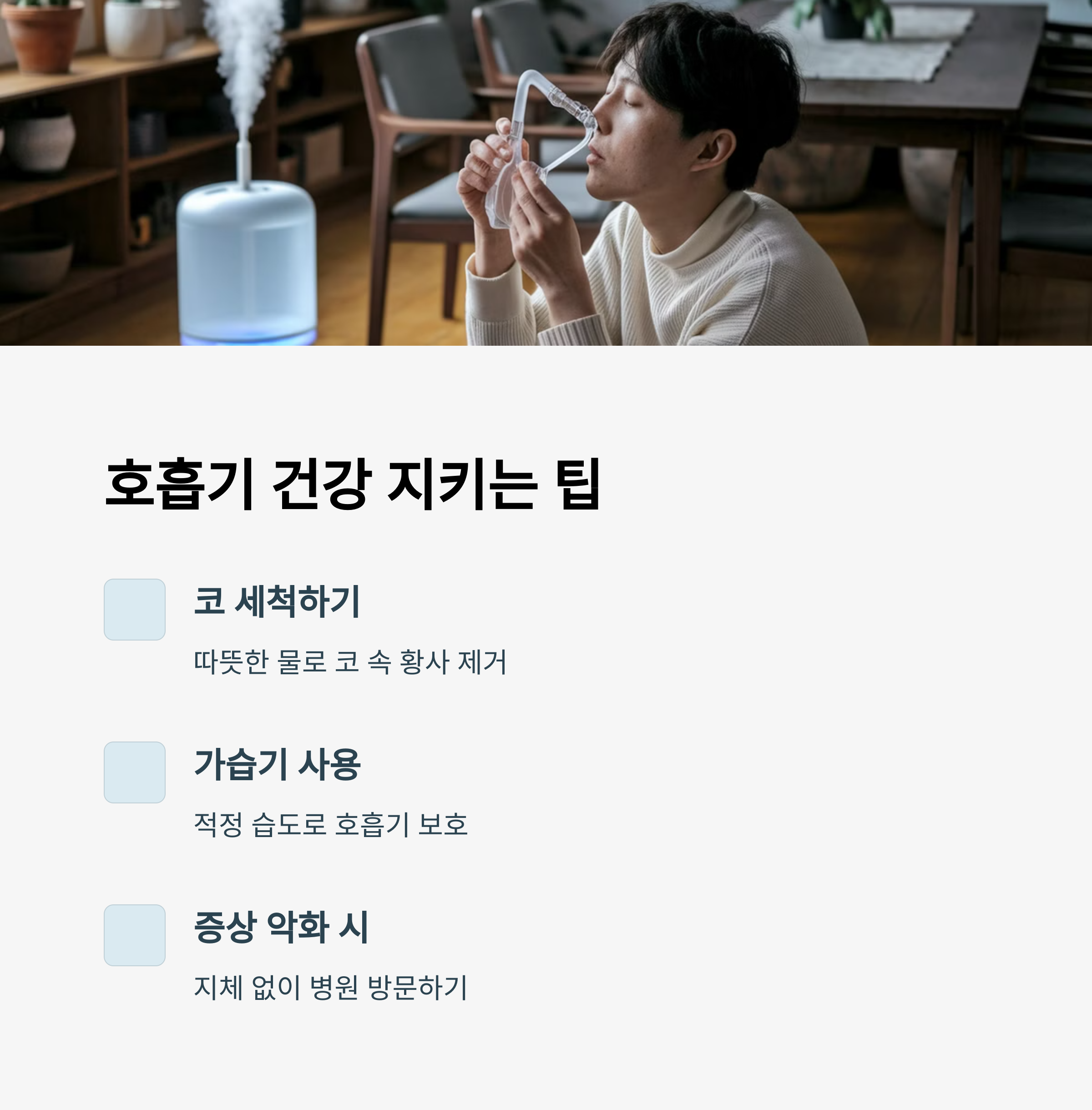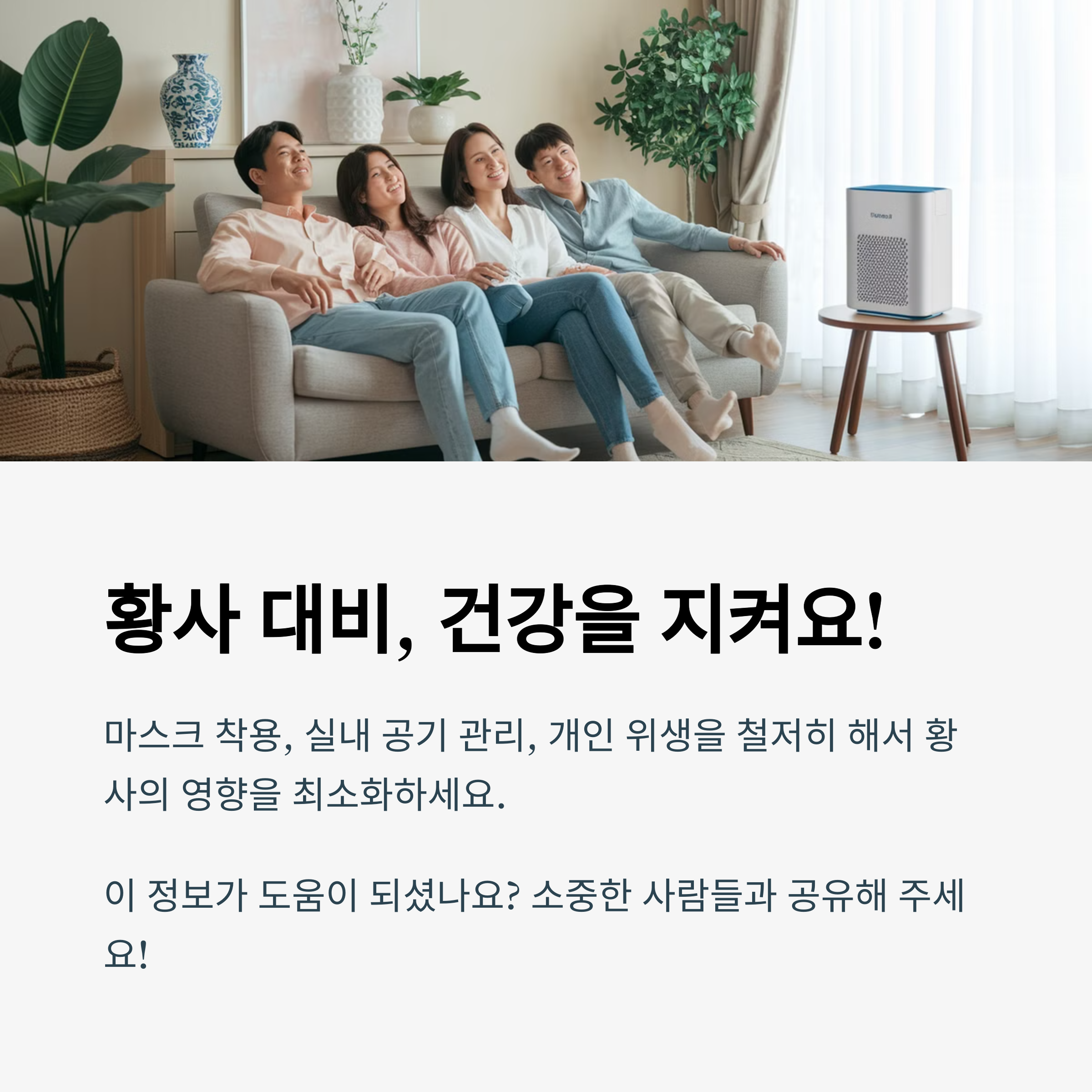 황사가 심한 날에도 올바른 대비를 하면 건강을 지킬 수 있습니다. 실내 공기 관리와 외출 시 대비책을 잘 지켜 건강한 하루를 보내세요!