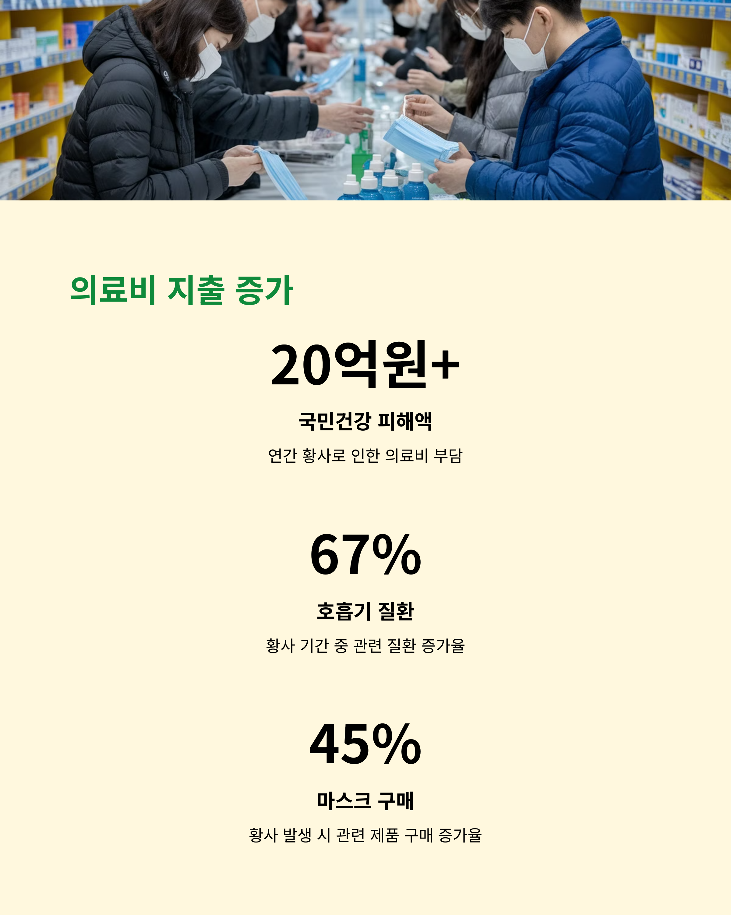 | 병원 진료비 증가 | 호흡기 및 안구 질환 환자 증가로 의료비 상승 |