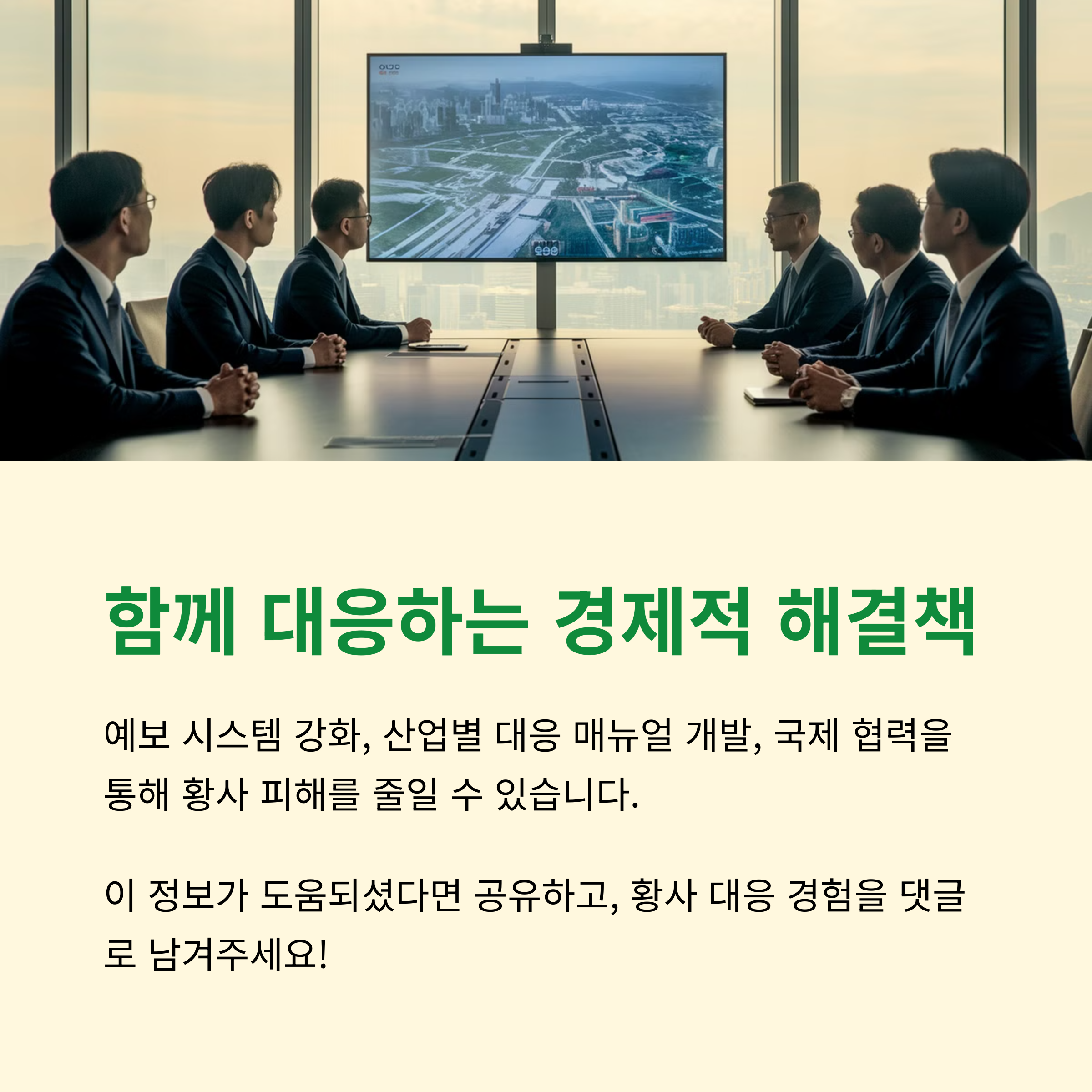 황사는 단순한 날씨 변화가 아니라 한국 경제에도 큰 영향을 미치는 요소입니다. 산업 생산성 저하, 의료비 증가, 관광 산업 침체 등 다양한 문제를 일으키지만, 적절한 대응책과 지속적인 환경 보호 노력을 통해 그 피해를 줄일 수 있습니다. 여러분은 황사가 경제에 미치는 영향에 대해 어떻게 생각하시나요? 또한, 황사를 줄이기 위해 개인적으로 실천하고 있는 방법이 있으신가요? 여러분의 의견을 댓글로 남겨 주시면 함께 이야기를 나눠보도록 하겠습니다. 더욱 깨끗한 미래를 위해, 우리 모두 작은 실천부터 시작해 보아요!