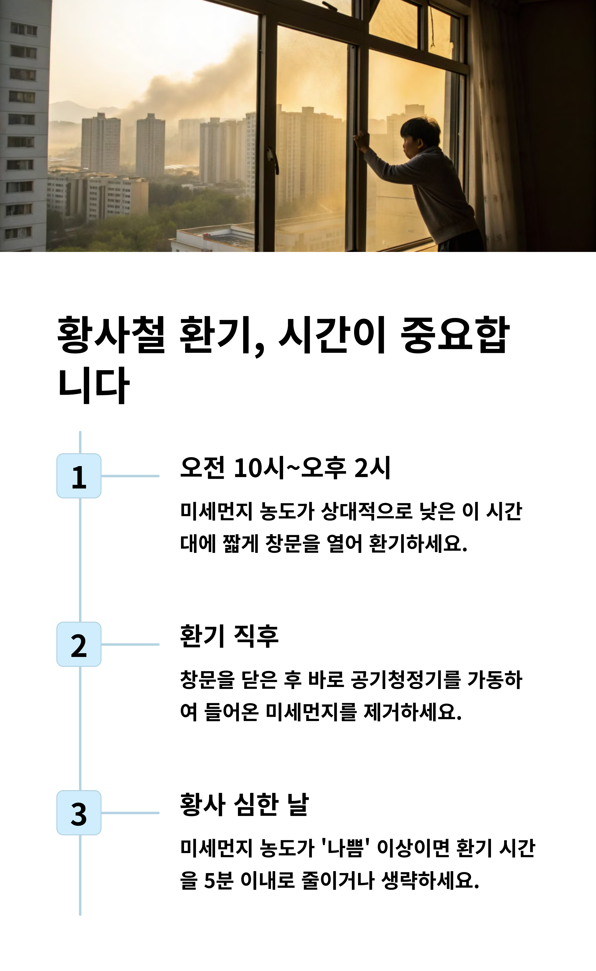 - 🔹 황사가 심한 날에는 환기 시간 조절
