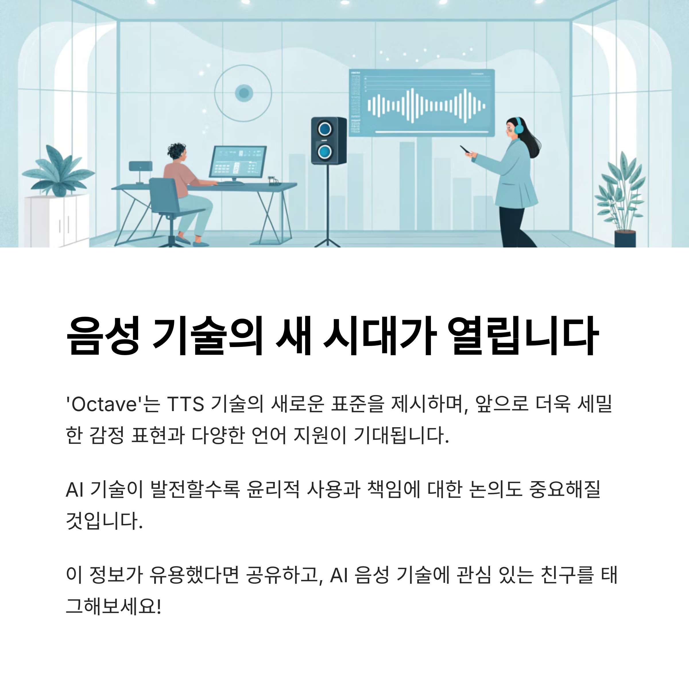 여러분은 AI 음성 기술의 발전에 대해 어떻게 생각하시나요? 'Octave' 같은 혁신적인 TTS 기술이 어디까지 발전할 수 있을까요? 의견이 있다면 **댓글로 공유해주세요!** 😊🎙